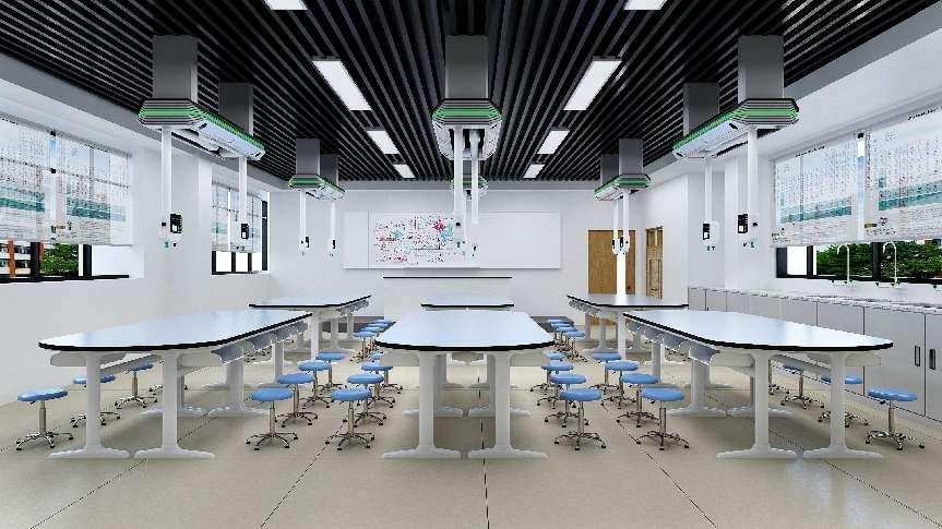 1.智能实验室系统:自主研发的单体/连体智能吊装系统,无缝集成电源、排水、通风、网络及实验台,通过多传感器融合与自适应控制技术,实现实验环境灵活切换与安全管控,降低操作风险。搭配全钢通风柜(镀锌钢基材+环氧树脂喷塑工艺),具备防腐蚀、耐酸碱特性,环形吸风设计可高效排出有害气体,玻璃门无级停留且左右移动便捷;万向吸风罩动作灵活,能快速清除实验粉尘与挥发性气体,守护师生健康。