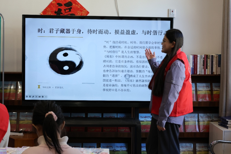 实践团不仅关注物质发展与儿童教育,也致力于乡村文化底蕴的挖掘与滋养。成员孔文森面向村民和学生主讲了“周易哲学与人生智慧”专题讲座。他将《周易》中“变易、简易、不易”的哲理与“时位之道”,巧妙联系乡村发展实际与个人成长,阐释如何在变化中把握机遇、明确责任、修养德行。讲座弘扬的“自强不息”“厚德载物”精神,为乡村和谐发展与个人安身立命注入了古老的智慧动能,促进了传统文化在当代乡村的创造性转化与创新性发展。