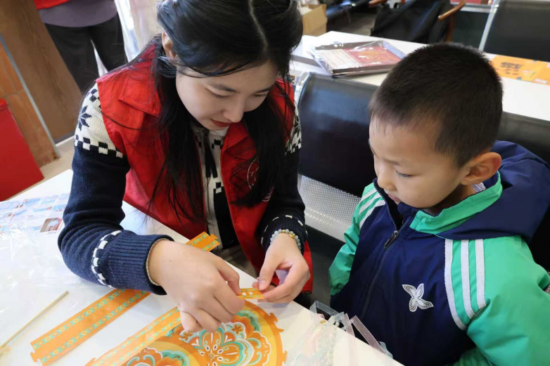 一场 “非遗手作润童心” 活动让传统文化在手中“活”起来。孩子们在志愿者指导下,制作新年拓印日历与宝相花鼓灯,从千年拓印技艺到“东方芭蕾”花鼓灯的文化渊源,在动手实践中感受中华优秀传统文化的博大精深,播下了文化自信的种子。
