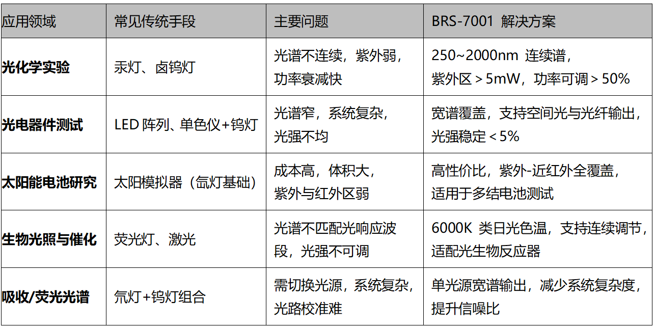 在光化学、光电测试、太阳能研究、生物光催化及光谱分析等领域,传统光源常面临光谱窄、功率不稳、紫外输出弱、散热差、维护难等挑战。杭州博源光电推出的BRS-7001大功率氙灯光源,以250W高功率、宽谱连续覆盖、灵活输出与稳定系统,为多领域光学实验提供高可靠、易集成、强适配的辐射解决方案。