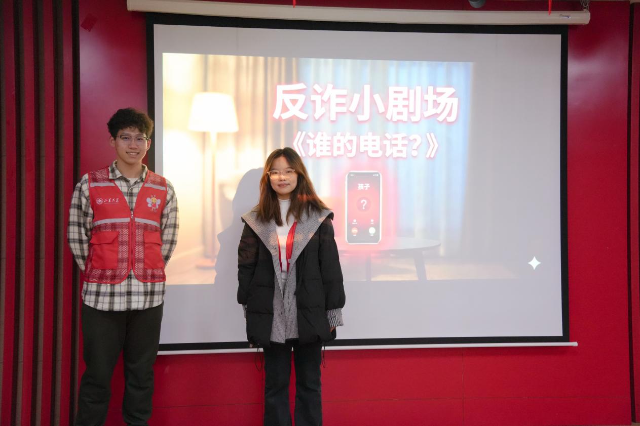 团队突破原有单一理论宣讲形式,自行编写排演情景剧,增强活动的趣味性和互动性。在反诈专题宣讲中,队员自主编写剧本《谁的电话》,通过角色扮演还原AI数字人诈骗,直观再现诈骗话术与心理操控过程。情景演绎结束后,队员结合剧情讲解识别要点与应对方法,使防范知识具象化、情节化,增强居民的识别能力。在防范非法集资专题中,团队系统梳理“养老服务”“绿色农业”“免费旅游”“高新科技”四类典型骗局,结合真实案例剖析其运作逻辑与欺骗本质。互动环节中,居民积极参与问答,展现出良好的防范意识。消费者权益保护宣讲则聚焦老年人日常消费难题,采用“案例讲解+维权小剧场”方式逐类剖析,针对“直播间购物”“天价上门服务”等新型消费陷阱,队员结合自身及家庭经历进行讲解,提升宣讲的现实针对性。