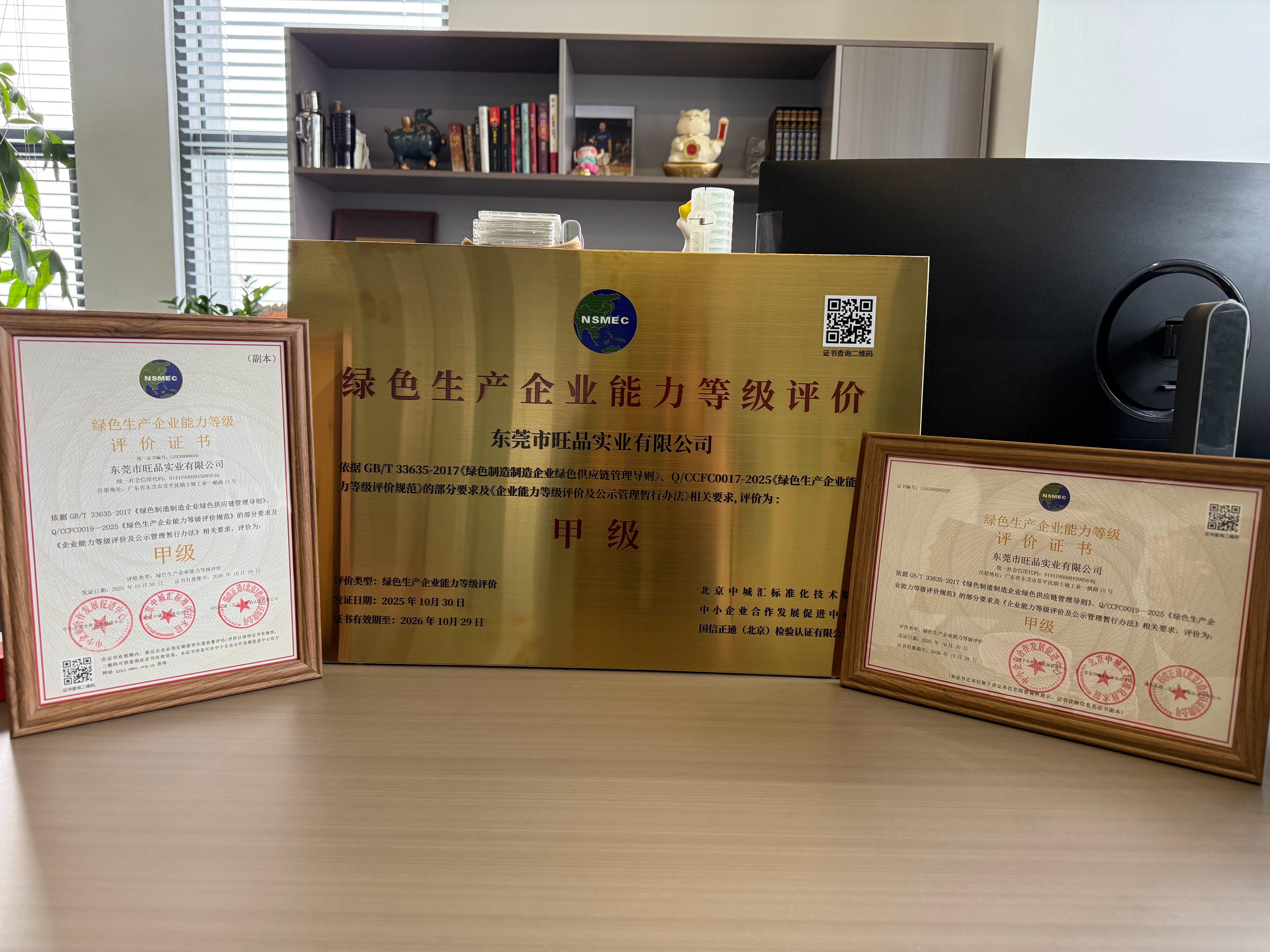 在环保合规方面,该企业执行欧盟环保高标准,产品通过多项环保检测,并获得东莞首张绿色生产企业能力等级评价证书。这一资质由中小企业合作发展促进中心颁发,体现了其在生产过程管控与环境责任履行方面的系统能力。